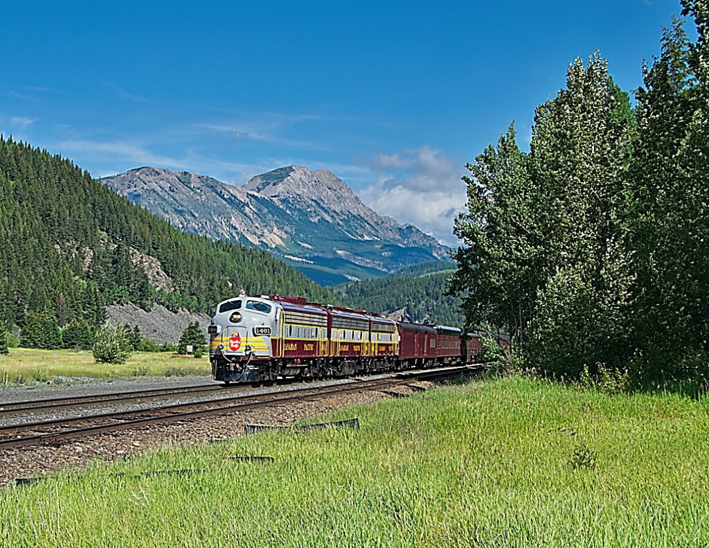 Chasing the Royal Canadian Pacific is always a good reason to get up early on a Saturday and travel west to the mountains. Here CP 1401, CP 1900, and CP 4107 run in an A-B-A arrangement as they cross the continental divide between British Columbia and Alberta.