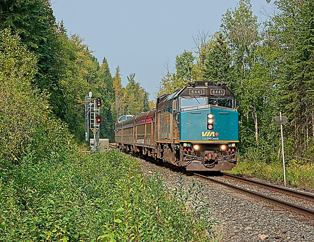 Mile 12.2 on CN’s Fraser Sub a few minutes west of McBride, BC made for a good lunch stop while waiting for VIA 6 to pass by. VIA 6441 (EMD F40PH-2D) is keeping the train on time as it travels east to Jasper, AB.